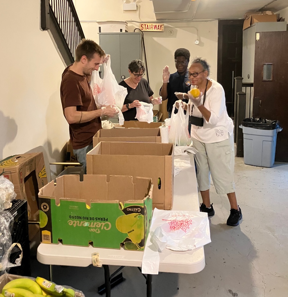 As a member agency of the Greater Chicago Food Depository, the Hyde Park-Kenwood Food Pantry’s mission for over 40 years has been to provide supplemental nutrition for our neighbors on the mid-South Side of Chicago, and a place for neighbors, volunteers and clients, to meet over the common concern and need for good, healthy food. Our motto is “neighbors with neighbors”. We operate on a “client choice” model, such that each household can choose the food that they want and need for their families (fresh fruit and vegetables, frozen meat and fish, pasta, peanut butter, canned goods, dried cereal, etc.).